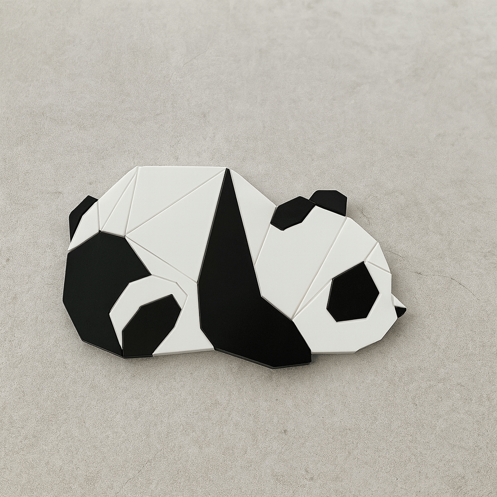The panda’s relaxed posture and joyful expression bring instant warmth and positivity to your surroundings. It’s a delightful reminder of peace and simplicity in a busy world. - Minimalist Black & White Finish: